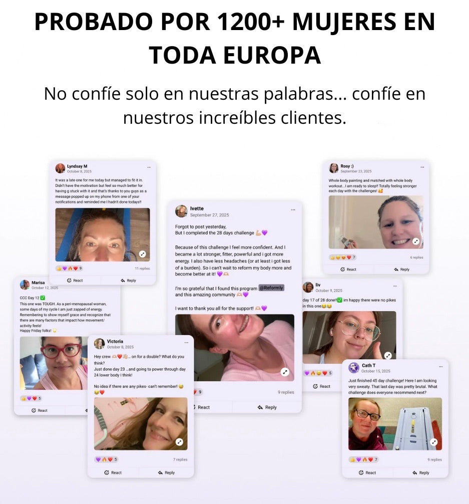 Hasta ahora, hemos ayudado a más de 1,200 mujeres en toda Europa a alcanzar metas que antes parecían imposibles. Mujeres que pensaban que no tenían tiempo. Mujeres que se sentían intimidadas por los gimnasios. Mujeres como tú.